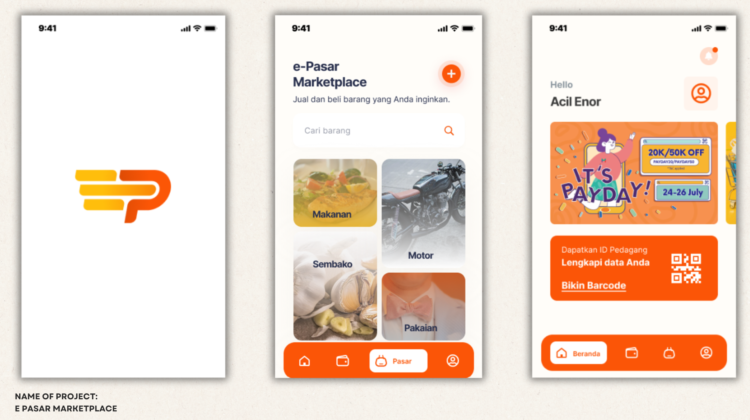 E-Pasar Marketplace is a digital marketplace application designed to modernize traditional markets in South Kalimantan. I acted as UI/UX Designer and Frontend Developer, using Figma to design the interface, Flutter for mobile development, and Xcode for iOS support, while Node.js handled the backend.